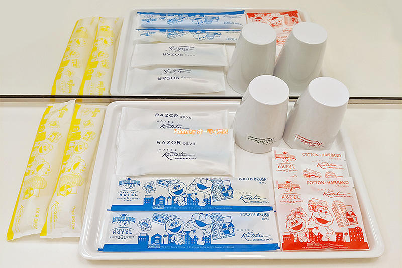 しかも、歯ブラシ、ヘアブラシ、ヘアゴムは「セサミストリート」のキャラクターが描かれています。キャラクターとコラボしたアメニティは「ホテル近鉄ユニバーサルシティ」の特典で、子どもさんに喜ばれるのではないでしょうか?ほっこりできる演出は「ホテル近鉄ユニバーサルシティ」をはじめ、USJオフィシャルホテルに宿泊する楽しみです。