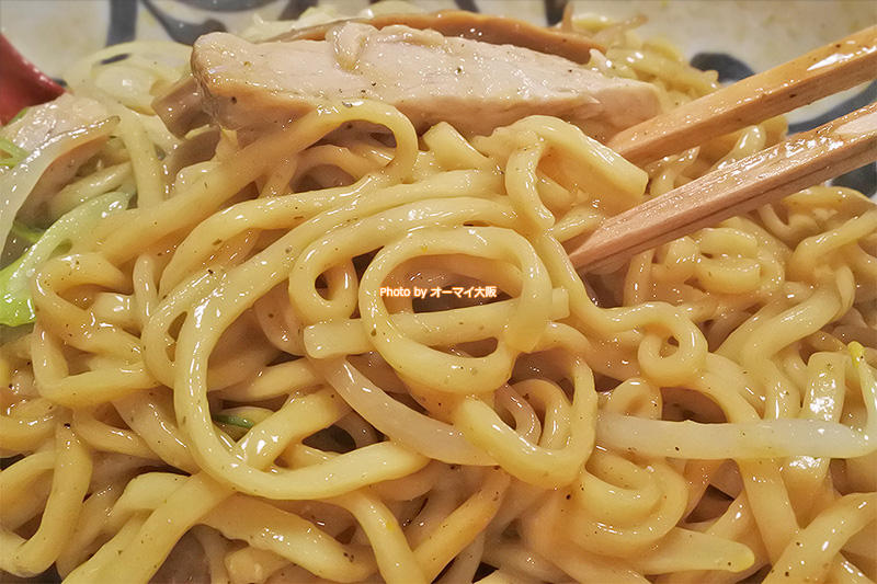 油そばの麺は、自家製麺の太麺。コシが強く、食べごたえのある太麺です。つけそばの麺と比べて、コシがめっちゃ強いです!