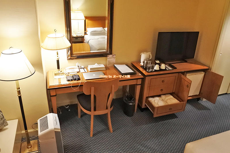 そんなわけで、ウエストウイングのシングルルームは、どちらかと言えば「思いきり大阪観光を楽しんだあと客室で疲れを癒したい観光客」や「ホテル外でガッツリと仕事をして、客室ではちょっとした作業をするビジネスパーソン」に向いている客室(宿泊プラン)です。