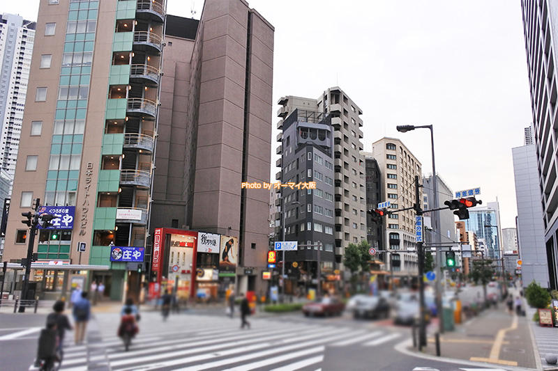 最寄り駅である肥後橋駅の「2番出入口」からビジネスホテル「ウェリナホテルプレミア中之島イースト」までは一直線。歩いていると、左側に、コンビニ、不動産店、うどん店、ラーメン店などがあります。ホテルの周辺に、飲食店やコンビニが多く、食べ物や飲み物に困ることがない最高の立地です。